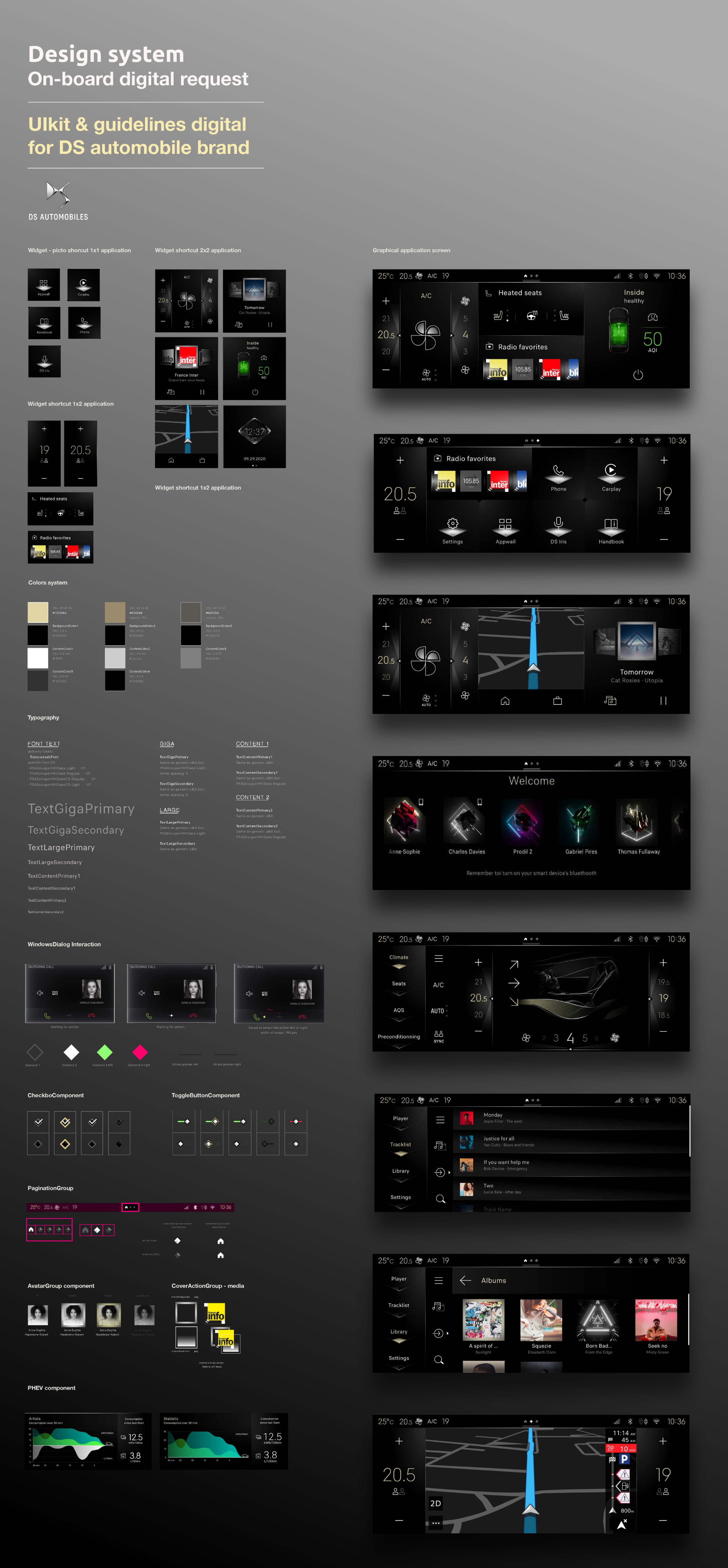 Conception d’un système numérique embarqué pour l’environnement automobile de la marque DS, alliant clarté, sécurité et performance.Analyse des usages, définition des parcours et prototypage UX pour tester et affiner l’expérience utilisateur.Design UI aligné sur l’identité de marque et contraintes techniques, accompagné jusqu’à l’intégration et le déploiement final.